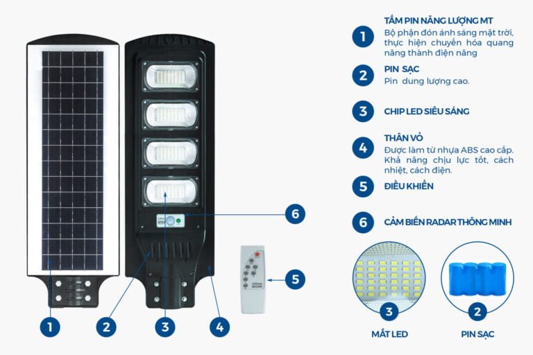– Đèn tích điện và chiếu sáng 4 mùa.